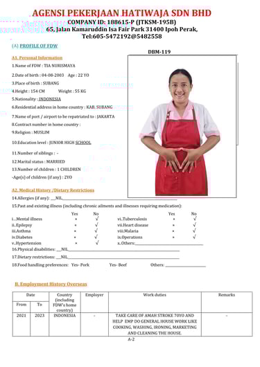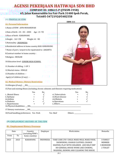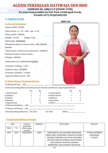 我们与多间印尼办事处及训练机构参与合作,务求为印尼女佣提供最专业的培训课程支援。每一名女佣均经背景调查严格挑选,并做好心理咨询,让我们的顾客选择我们时更安心。